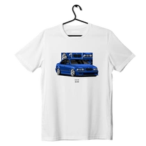 Bílé tričko BMW E39 sedan modré.