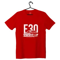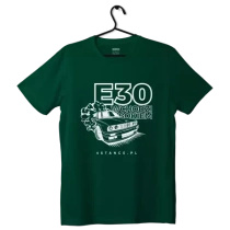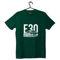 BMW E30 T-Shirt Seitlich einfahrend blau