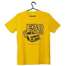 BMW E30 T-Shirt fährt seitlich gelb ein