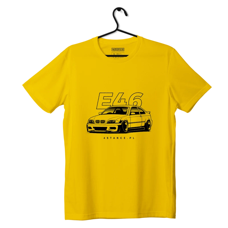 - Žluté tričko s předním dílem BMW E46 pro opravdové fanoušky aut. Vyjádřete svou vášeň a styl na ulici, na okruhu nebo na automobilových rallye. Objednejte si ještě dnes!
