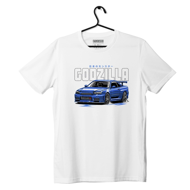 Bílé tričko NISSAN R34 GODZILLA - ideální pro fanoušky automobilů