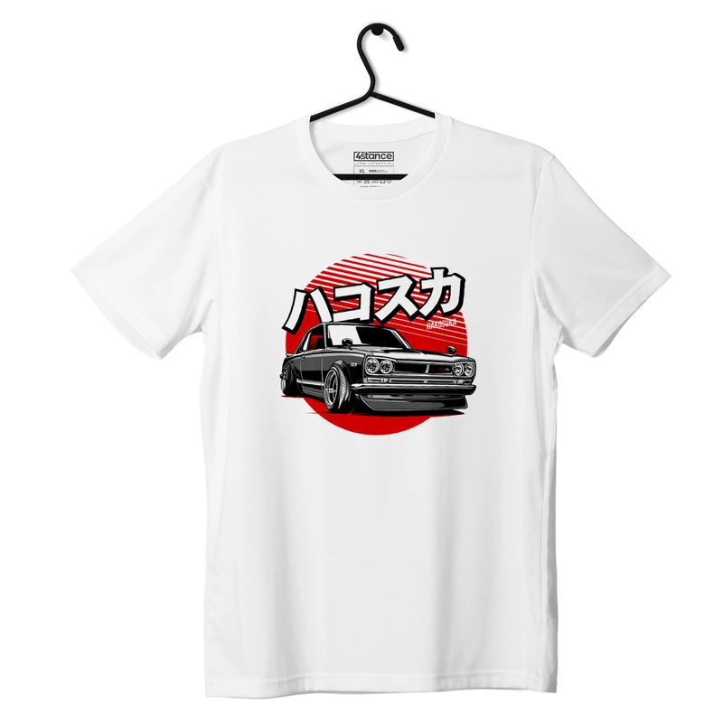 - Bílé tričko HAKOSUKA Nissan Skyline GT-R je pohodlné oblečení pro fanoušky japonského motorismu vyrobené ze 100% bavlny.