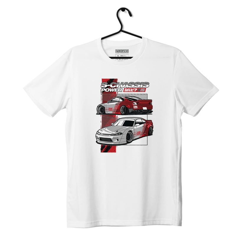 - Jedinečné bílé tričko Nissan Silvia S15 S-CHASSIS pro fanoušky značky Nissan. Vyrobeno ze 100% bavlny a opatřeno potiskem inspirovaným JDM.
