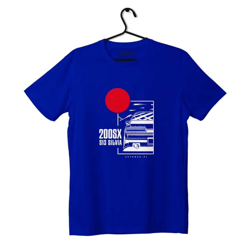 If you are passionate about automobiles and the JDM, Stance and Drift climate, then this blue Nissan 200SX S13 printed t-shirt is for you! Express your love for sports cars and Japanese style on the street, in the club or on the track.