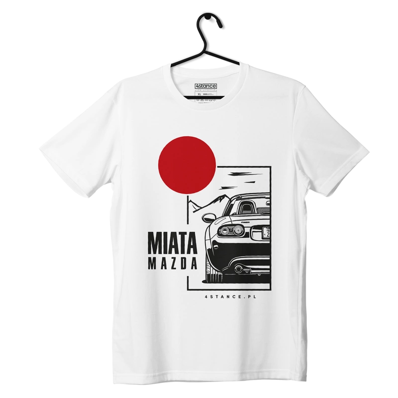 - The white Mazda Miata T-shirt is a must-have for automotive fans. Made of 100% cotton, it combines comfort with elegance and stylish design.