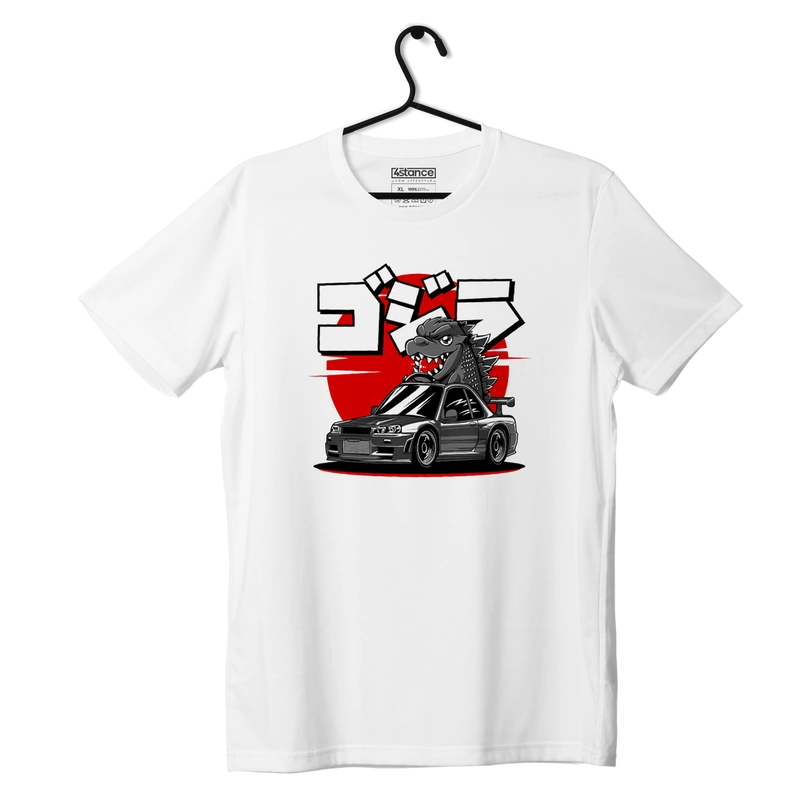 The front of the T-shirt features a unique print with the image of the legendary Skyline R34 model, one of the most recognizable cars in JDM culture. The details of the graphic have been carefully crafted to reflect the character of this unique car. The white color of the T-shirt emphasizes the purity and minimalism of Japanese design.