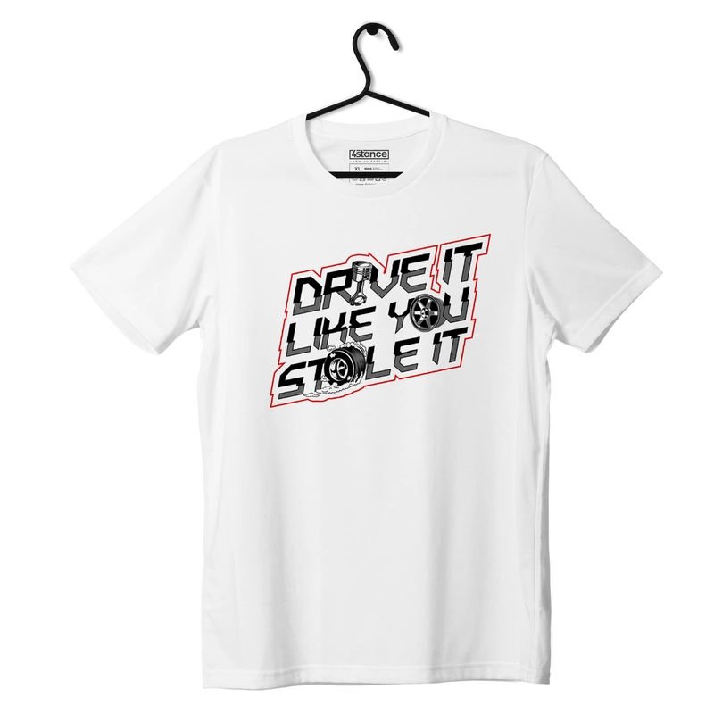 - This white T-shirt by Drive Like You Stole It is a must-have for automotive fans. Comfortable, durable, made of 100% cotton, with a classic cut.