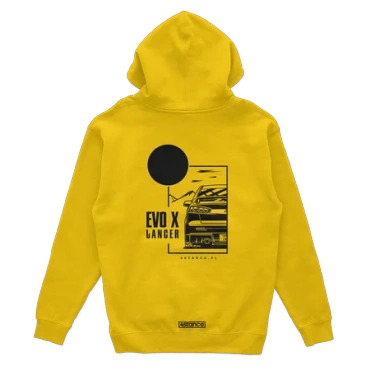 - Mitsubishi Lancer Evo X yellow hoodie - perfect for fans of motoring and jdm style. Comfortable, durable and full of energy. Express your passion!