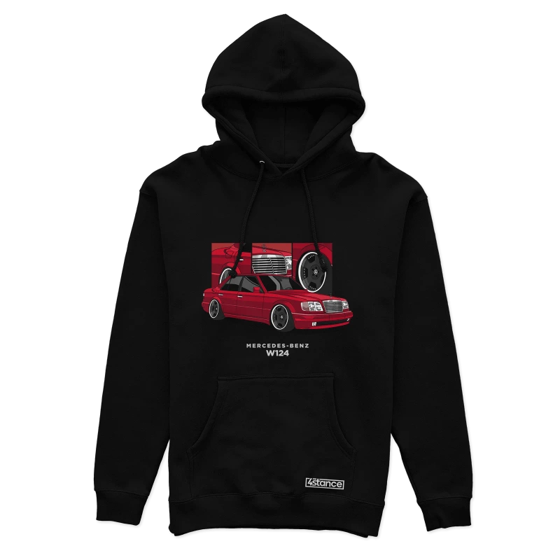 - Black Mercedes-Benz W124 hoodie - perfect for jdm, stance and drift fans! Stylish, comfortable and durable. Express your passion and feel like an automotive professional!