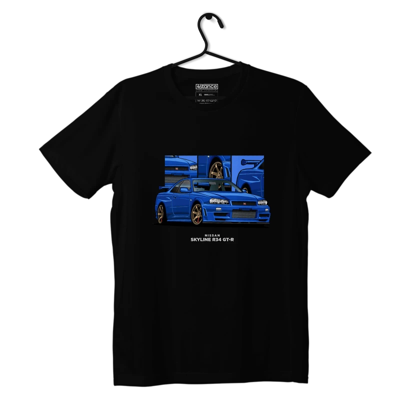 - Black NISSAN SKYLINE R34 T-shirt for automotive fans. Comfortable, durable and stylish. Order today and express your passion for sports cars!
