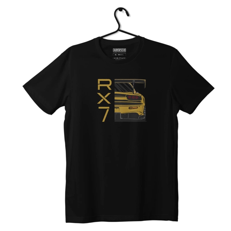 - The black MAZDA RX-7 RX7 YELLOW T-shirt is the perfect choice for automotive fans. It's made of cotton, with graphics that reference Japanese tuning.