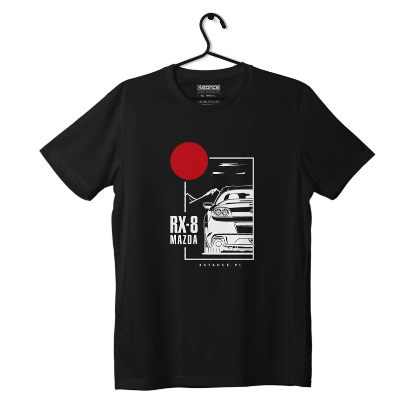 - Black MAZDA RX-8 JDM T-shirt for car enthusiasts. Made of high quality cotton, with MAZDA RX-8 car print, the perfect gift for JDM fans.