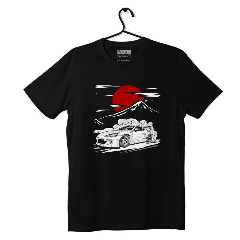 On the black background of the T-shirt is a graphic depicting a TOYOTA GT86 car in downhill action. It's not just aesthetics, but also a symbol of the speed, freedom and adrenaline that comes with driving at the limit. The design of the T-shirt was created for true fans of Japanese motoring, who appreciate originality and individuality.