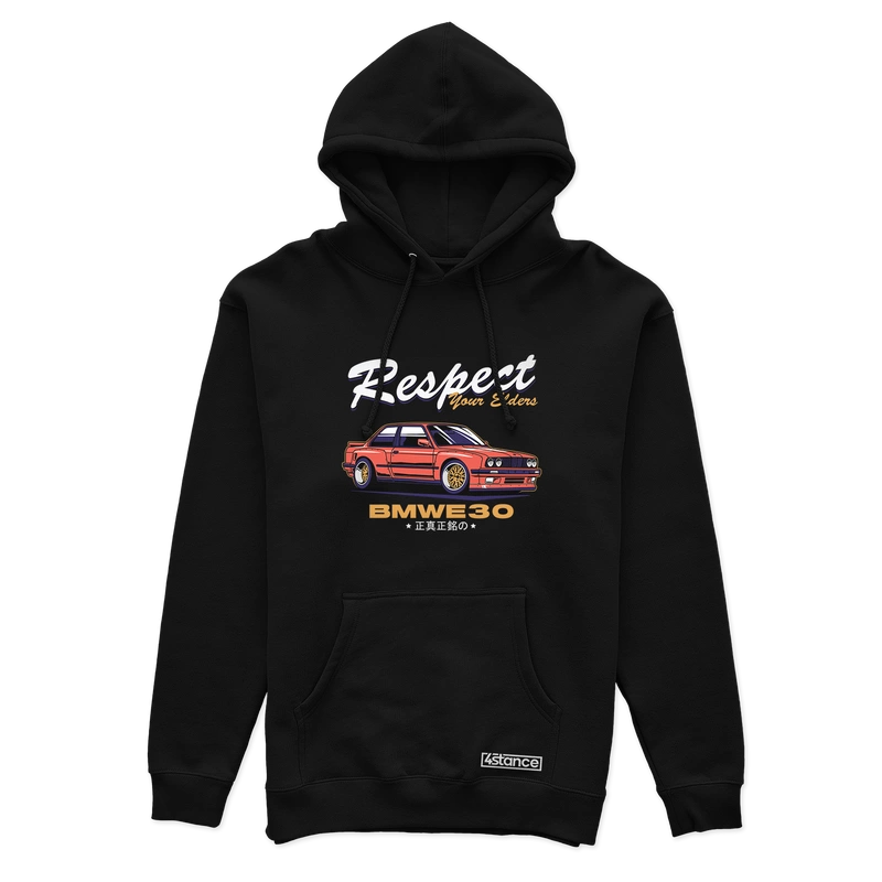 - Black BMW E30 Respect hoodie - perfect for automotive fans. Comfortable, stylish and authentic. Express your passion in any situation.