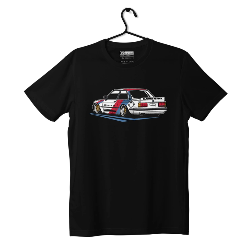 - Black T-shirt with BMW E30 Pandem print for true automotive fans. Comfortable, durable and stylish. Express your passion and join the community of enthusiasts.