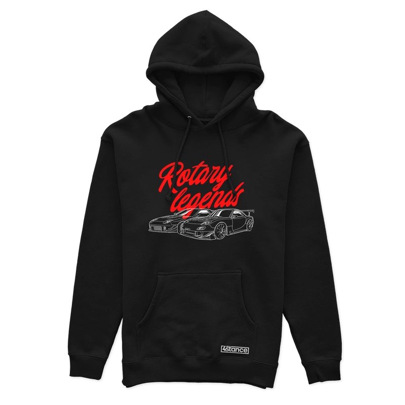 - ROTARY LEGENDS black hoodie - for automotive enthusiasts. Comfortable, durable and stylish. Join the automotive community. Order today!