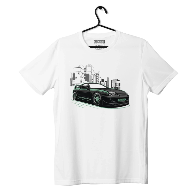 Emphasize your passion for automobiles with the white TOYOTA SUPRA MK4 NIGHT CITY T-shirt!