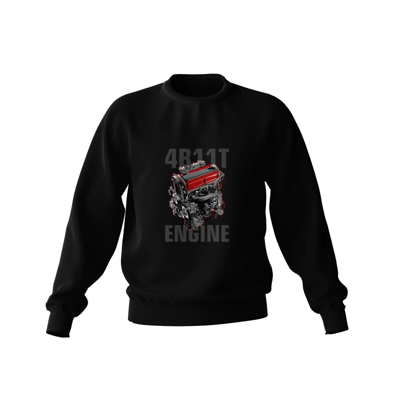 The sweatshirt features a unique design that reflects the spirit of jdm, stance and drift. Its black color adds to its elegance and makes you stand out from the crowd. The front features a unique print of the 4B 11T EVO engine, a symbol of power and performance. This is the perfect way to show the world that you are a true automotive enthusiast.