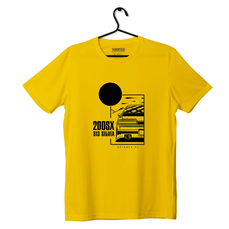 Die gelbe Farbe des T-Shirts symbolisiert Energie, Freude und eine positive Einstellung zum Leben. Außerdem unterstreicht das Nissan 200SX S13 Logo auf der Vorderseite des T-Shirts deine Liebe zu dieser kultigen Automarke.