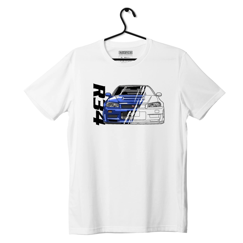 Weißes T-Shirt Nissan Skyline GT-R R34 JDM - Markanter Stil für echte Autoliebhaber!