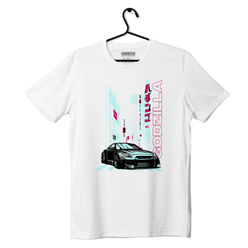 Auf unserem Regal ist gerade ein echtes Schmuckstück für alle Autofans, insbesondere für Liebhaber des JDM, Stance und Drift-Stils, erschienen. Es handelt sich um ein weißes T-Shirt mit einem Motiv, das eines der ikonischsten Autos aller Zeiten zeigt - den Nissan Skyline GT-R R35.