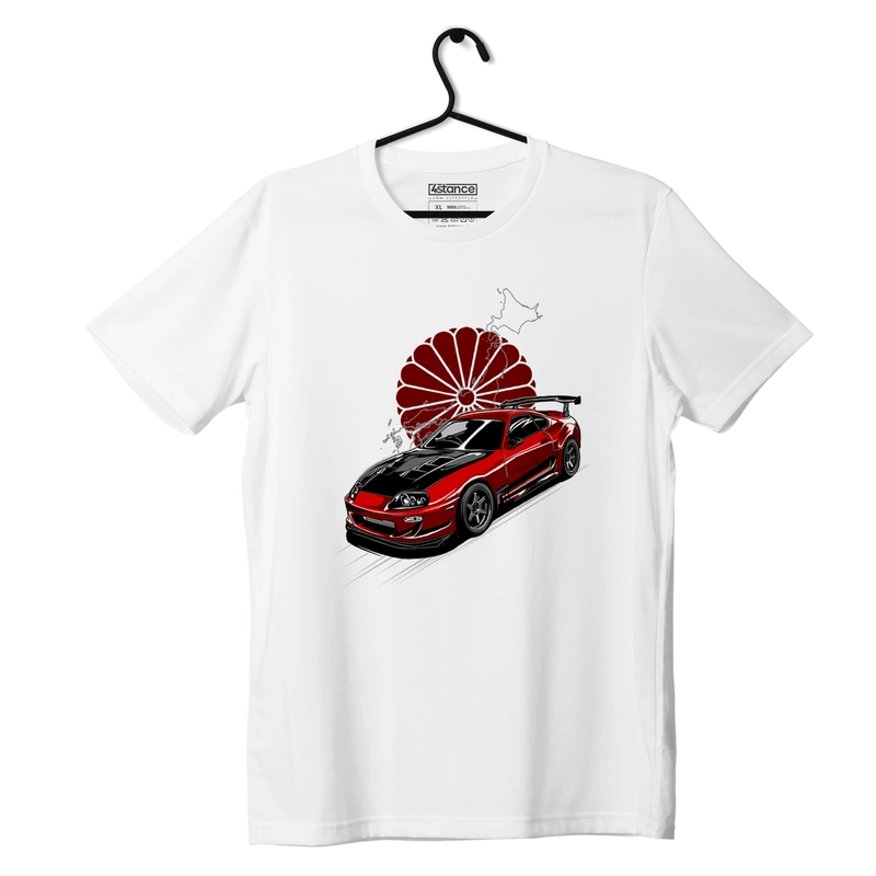 Weißes T-Shirt Toyota Supra mk4 Rote Sonne