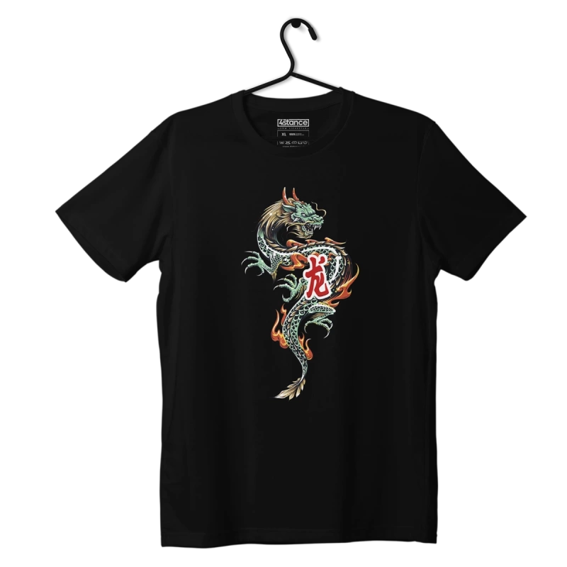 Aber es sind nicht nur die Farbe und der Tragekomfort, die dieses T-Shirt so besonders machen. Es ist vor allem sein einzigartiges Design, das an die JDM-Kultur (Japanese Domestic Market) anknüpft. Die Vorderseite des T-Shirts zeigt ein beeindruckendes, vollfarbiges Drachenmotiv, das zu den bekanntesten Symbolen Japans gehört. Es ist eine Hommage an die Kraft und Eleganz der japanischen Maschinen, die seit Jahren die Drift- und Stance-Szene dominieren.