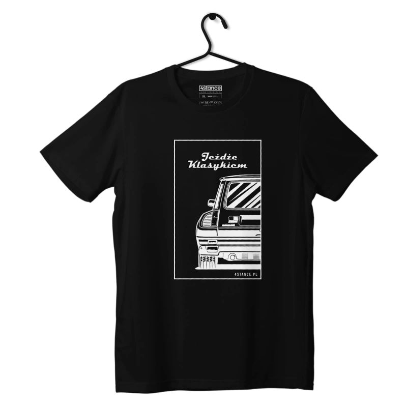 Wir möchten Sie einladen, sich das Angebot unseres Shops anzuschauen, das nicht nur Autoteile, sondern auch Autokleidung und Gadgets umfasst. Für echte Autofans bieten wir ein schwarzes T-Shirt mit dem Aufdruck RENAULT 5 und der Aufschrift "I drive a classic". Es ist das perfekte Produkt für alle, die auf der Suche nach origineller Kleidung mit automobiler Thematik sind, sowie für Fans des JDM-, Stance- und Drift-Klimas.