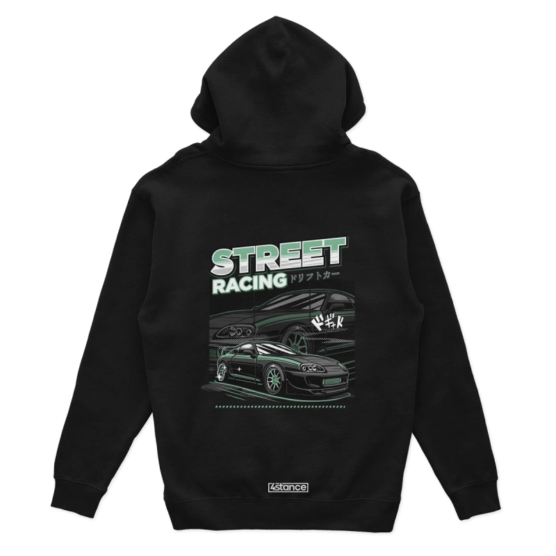 Schwarzer TOYOTA SUPRA MK4 STREET Hoodie - Perfekt für den Autoliebhaber