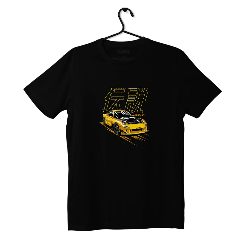 - Schwarzes T-Shirt bedruckt mit Mazda RX7 JDM - drücken Sie Ihre Leidenschaft für das Autofahren aus! Perfekt für Fans der Autos und des japanischen Driftstils. Bequem und langlebig. Bestellen Sie noch heute!