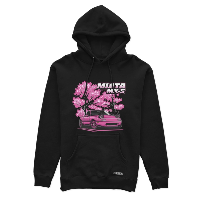- Schwarzer MAZDA MIATA SAKURA Hoodie - ein Symbol für Stil und Leidenschaft für JDM, Stance und Drifting. Bequem, hohe Qualität, ideal für Autofans.