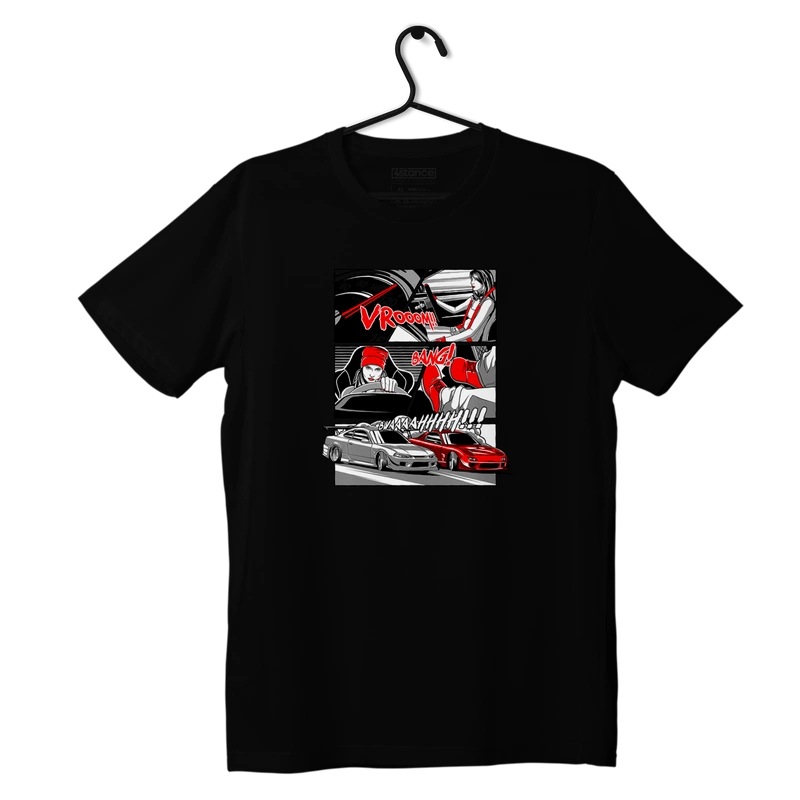 Schwarzes T-Shirt COMIC DRIFT - die perfekte Wahl für Fans von JDM, Stance und Drift!