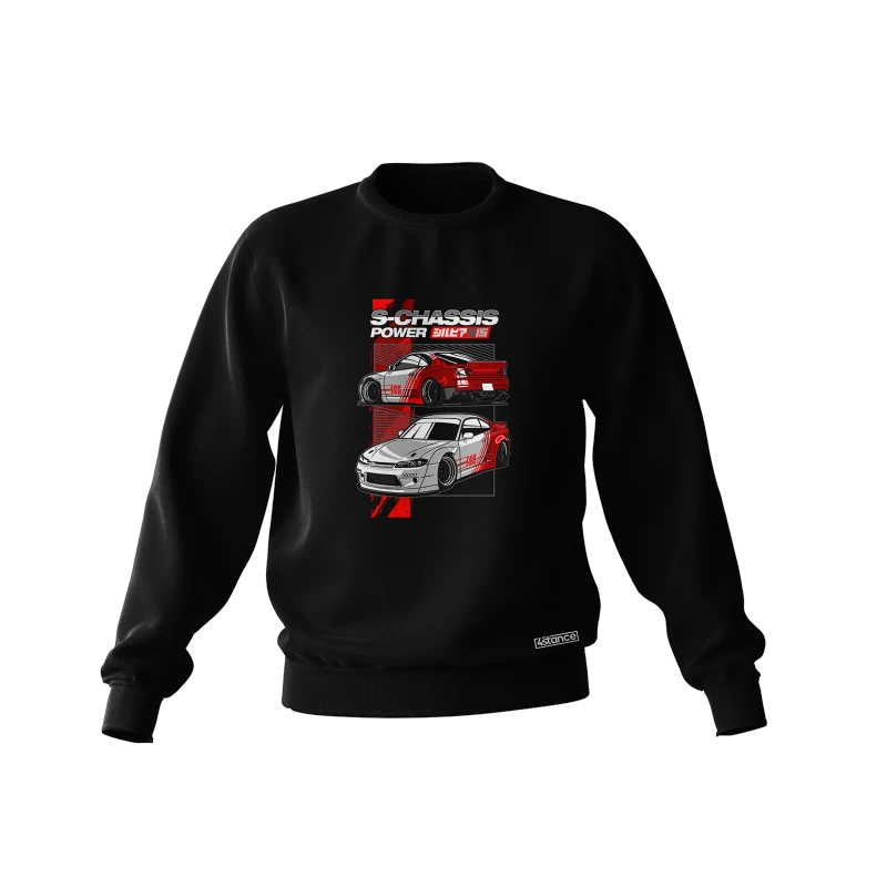 - Schwarzes Nissan Silvia S15 S-CHASSIS Sweatshirt - ein Manifest der Leidenschaft und des Lifestyles. Bequem, langlebig und elegant. Ideal für Autofans.