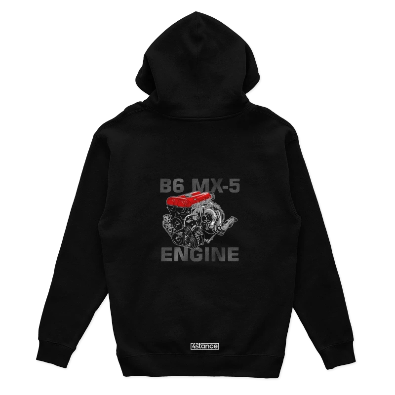 - Schwarzer Hoodie B6 MX5 Motor - für Autoliebhaber. Einzigartiges Design, hohe Qualität und ein Symbol der Kraft. Bestellen Sie jetzt und drücken Sie Ihre Leidenschaft aus!