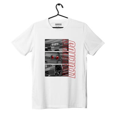 - Biały t-shirt z legendarnym modelem Nissan Skyline GT-R R32 dla fanów motoryzacji. Wykonany z 100% bawełny, gwarantuje komfort i styl.