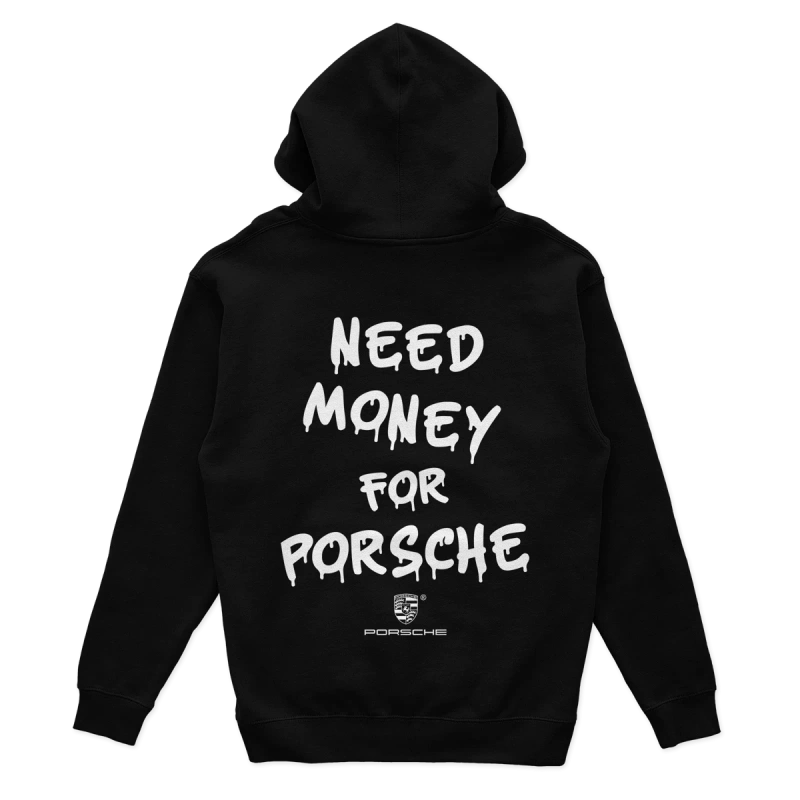 Czarna Bluza z Kapturem Need Money for Porsche – Twój Stylowy Manifest
