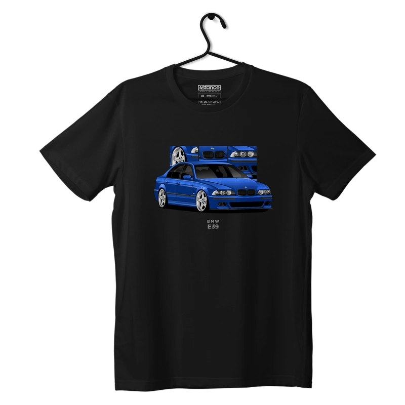 - Czarny T-shirt z grafiką BMW E39, wykonany z 100% bawełny. Idealny dla fanów motoryzacji i kultury jdm, stance, drift.