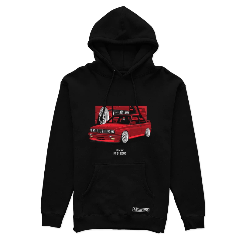Czarna bluza z kapturem BMW E30 M3 coupe - idealna dla fanów jdm, stance i driftu!