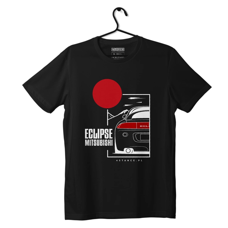 Czarny T-shirt koszulka MITSUBISHI ECLIPSE - idealna dla miłośników motoryzacji w stylu jdm, stance i drift!