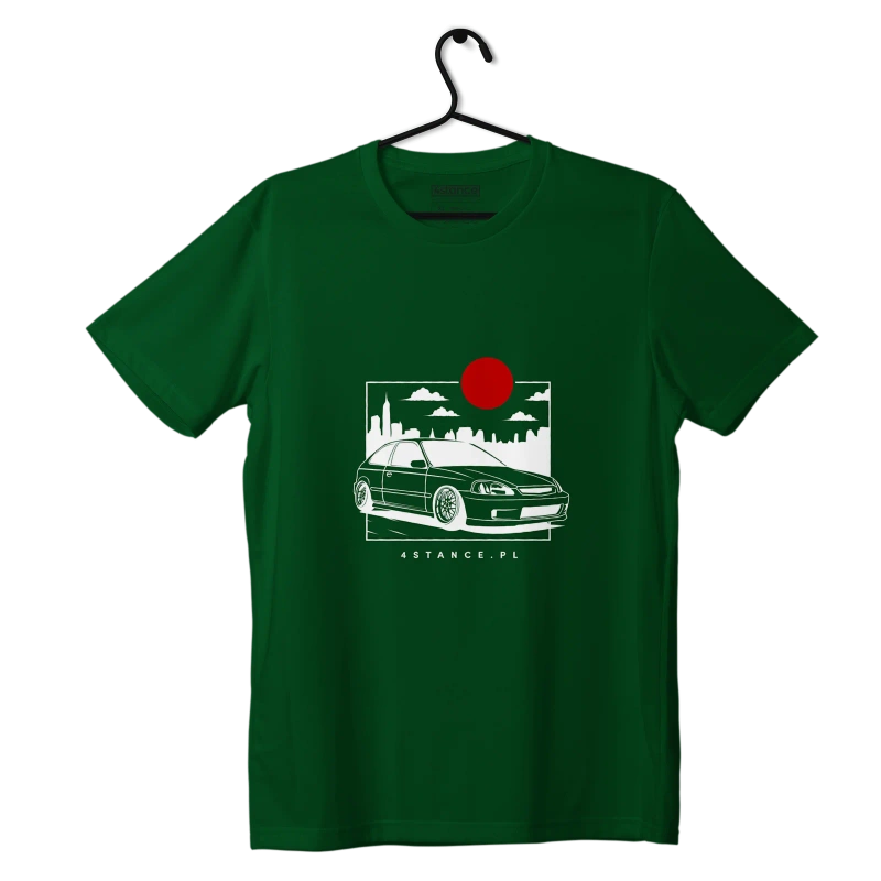 Potlač na tričku zobrazuje ikonickú Hondu Civic VI v štýle JDM. Toto auto je symbolom japonského motorizmu a driftovania a teraz ho môžete mať na tričku aj vy! Výrazná zelená farba vám dodá energiu a vyčnieva z davu.