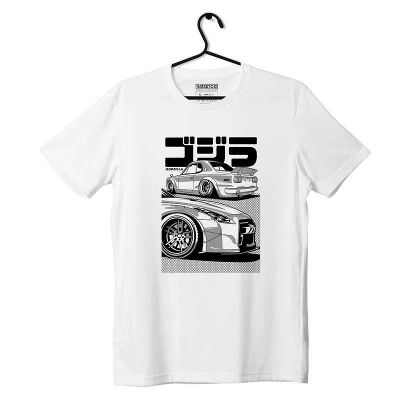 Biele tričko Nissan Skyline GT-R GOJIRA - zberateľský predmet pre milovníkov automobilov