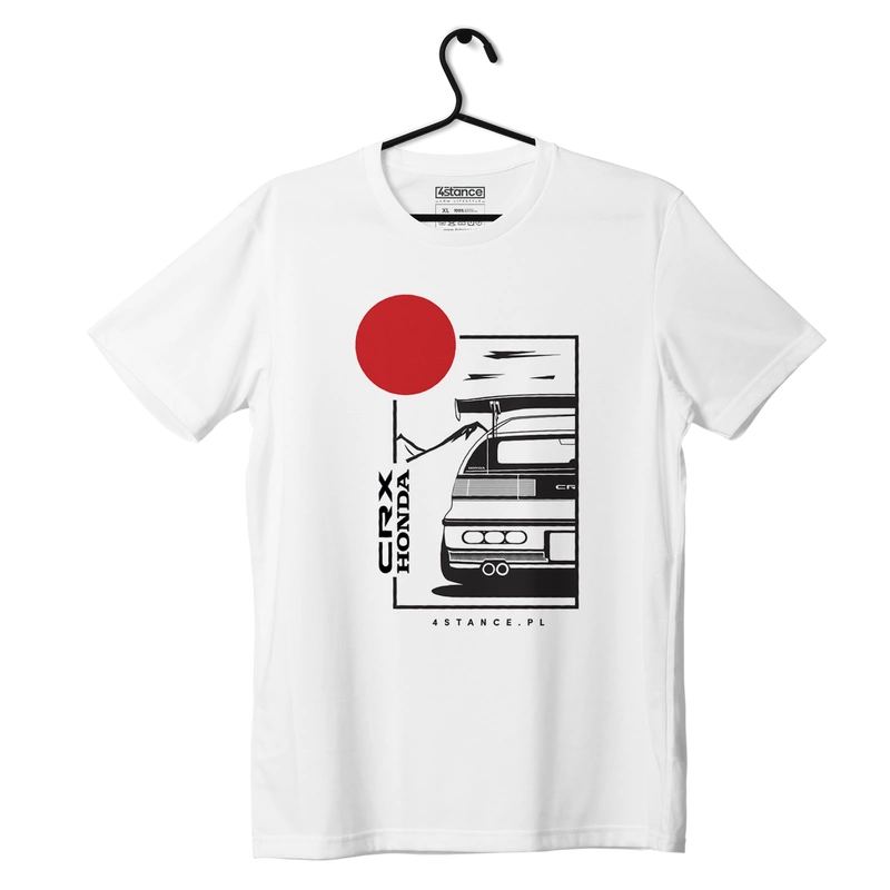 To, čo vás zaujme na prvý pohľad, je originálny a jedinečný dizajn. Na bielom pozadí trička sa nachádza grafika znázorňujúca legendárny model Honda CRX, ktorý je ikonou štýlu JDM. Toto auto, ktoré sa preslávilo svojím jedinečným dizajnom a vynikajúcimi výkonmi, vás teraz môže sprevádzať v každodennom živote.