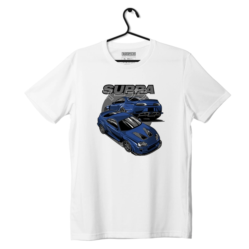 - Biele tričko Toyota Supra mk4 Blue je povinnou výbavou fanúšikov značky Toyota. Je vyrobené z kvalitnej bavlny a má výraznú potlač.