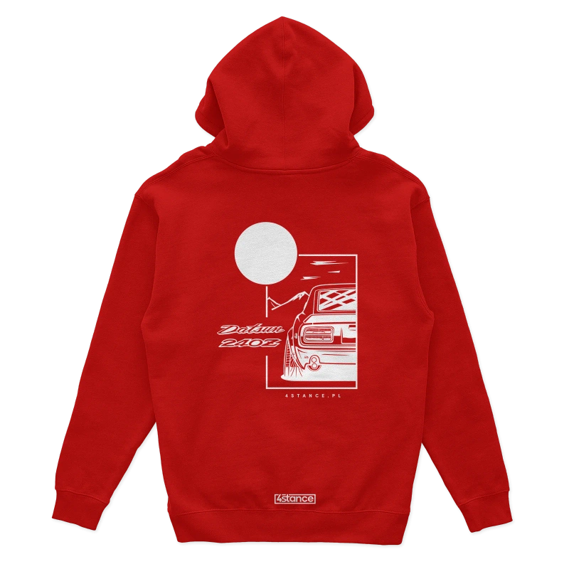 Mikina je vyrobená z vysokokvalitných materiálov a je nielen pohodlná na nosenie, ale aj trvácna a odolná voči intenzívnemu používaniu. Jej červená farba dokonale odráža charakter legendárneho modelu Datsun 240Z, ktorý je ikonou japonského motorizmu.