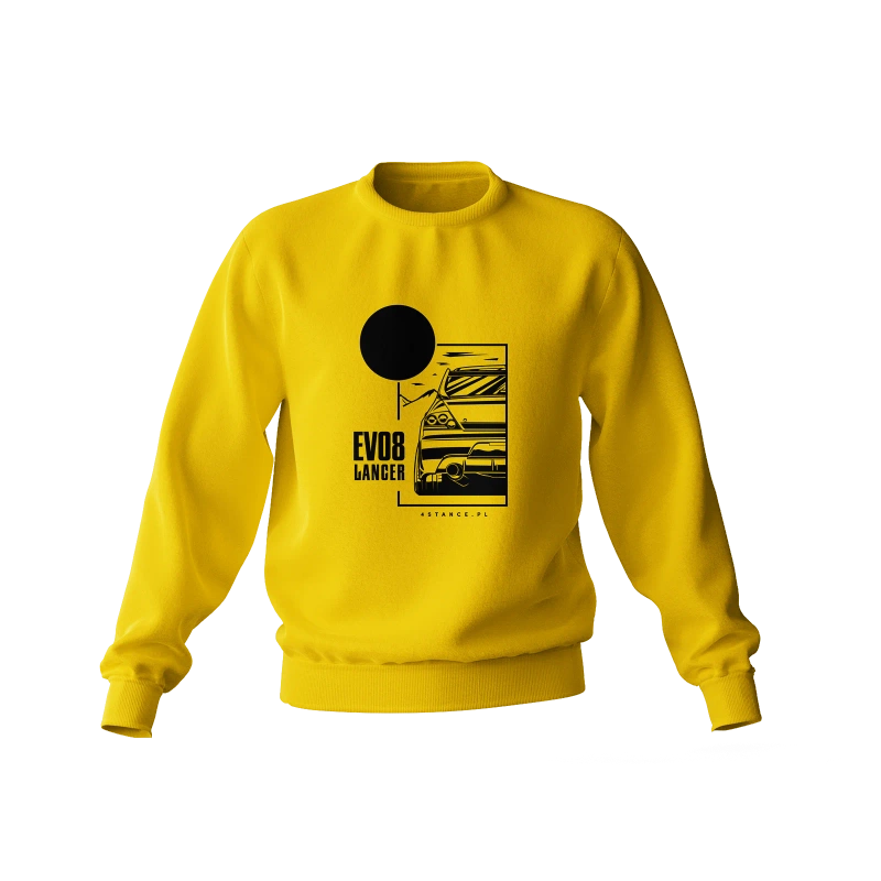 Výrazná žltá farba mikiny odkazuje na športový charakter vozidla Mitsubishi Lancer Evo 8, ktoré je symbolom sily, rýchlosti a adrenalínu. Je ideálnou voľbou pre tých, ktorí chcú na ulici vyniknúť a ukázať svoju lásku k motorizmu.