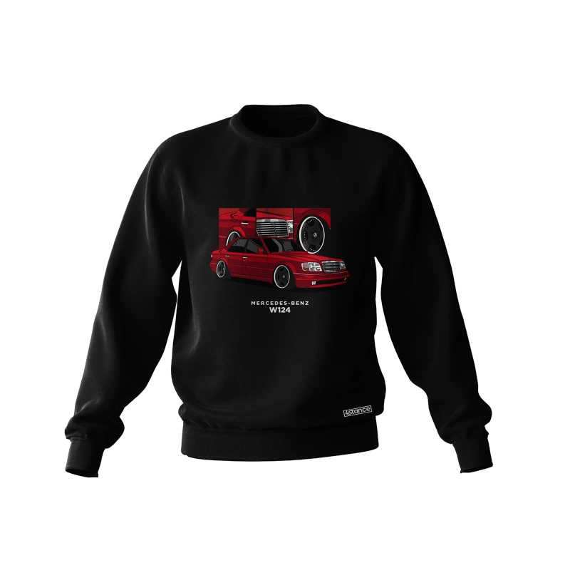 Ak ste skutočný automobilový nadšenec a milujete atmosféru jdm, stance a drift, táto čierna mikina Mercedes-Benz W124 je určená práve pre vás! Nie je to len obyčajná mikina, je to skutočný symbol štýlu a vášne pre autá.