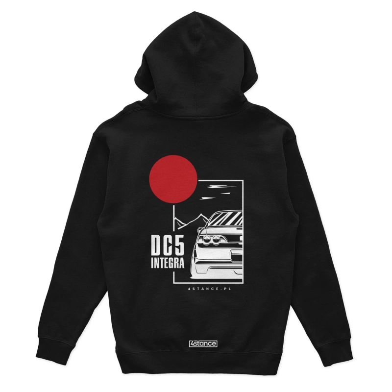 - Čierna mikina HONDA INTEGRA DC5 JDM, vyrobená z kvalitných materiálov, s výraznou potlačou a praktickou kapucňou, pre skutočných fanúšikov motorizmu.
