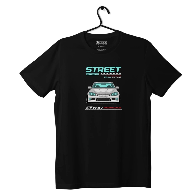 Na prednej strane trička je jedinečný agresívny dizajn zobrazujúci Lexus IS200/IS300 v akcii v uliciach. Grafika je odkazom na kultúru JDM, stance a drift, vďaka čomu tento produkt nie je len tričkom, ale aj prostriedkom automobilovej subkultúry. Farebná schéma je tlmená, čo umožňuje tričko ľahko kombinovať s inými kusmi oblečenia.