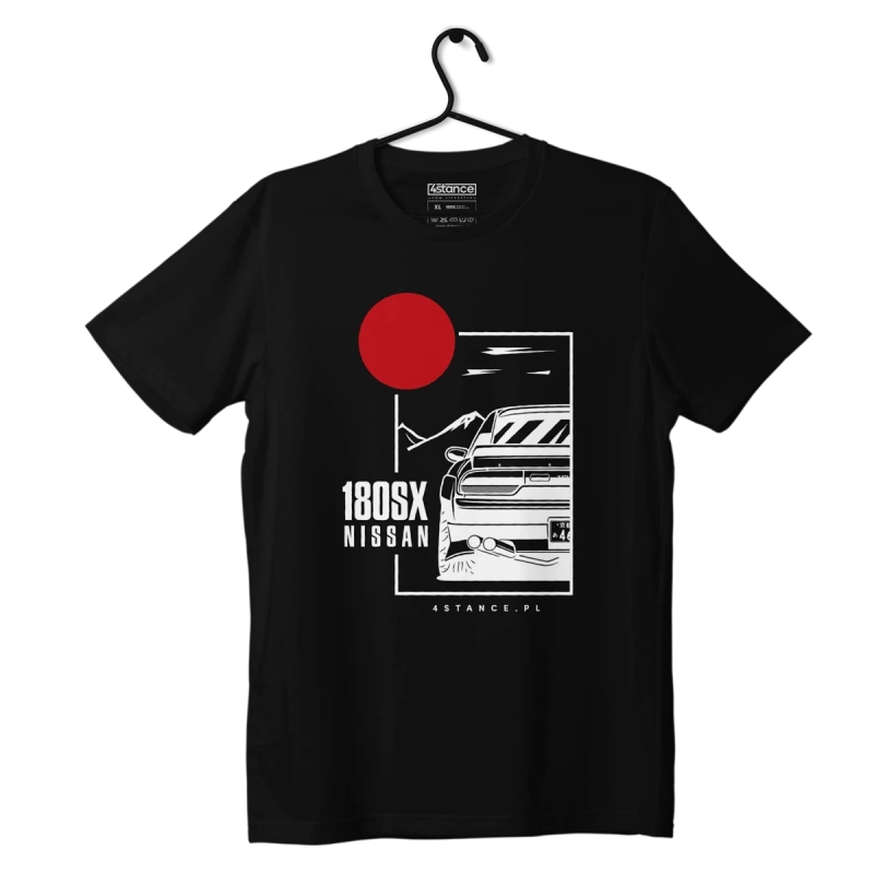 Na čiernom pozadí trička je grafika zobrazujúca ikonický model NISSAN 180SX v štýle JDM. Ide o klasický a zároveň moderný dizajn, ktorý určite upúta pozornosť ostatných motoristických nadšencov.