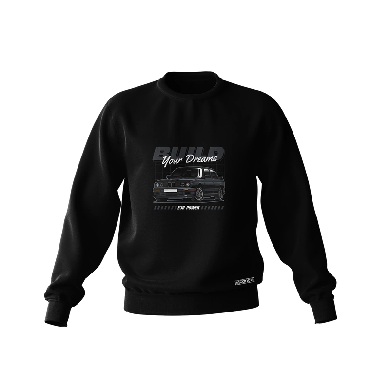 Ak ste skutočným fanúšikom áut a milujete jdm, stance a drift atmosféru, táto čierna mikina BMW E30 Build your dreams je pre vás! Nie je to len obyčajná mikina, je to skutočné vyjadrenie vašej vášne a životného štýlu.